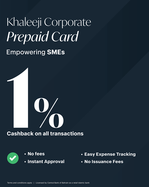 Designed for modern businesses, the new Khaleeji Corporate Prepaid Card is a solution that offers enhanced security and control, allowing you to track expenses in real time and manage card settings seamlessly through the “Hafeez” digital platform, while also delivering 1% cashback on every transaction, with no application or issuance fees, and instant approval for all companies.